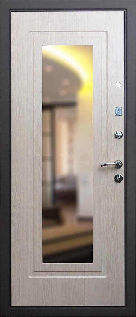 Прочная металлическая Дверь с зеркалом DZ385 по цене от 30 000 руб. под заказ в любой комплектации. Вы можете выбрать материал, замки, цилиндры и многое другое. Производим сами! Быстрая доставка и установка в Николаевске-на-Амуре.