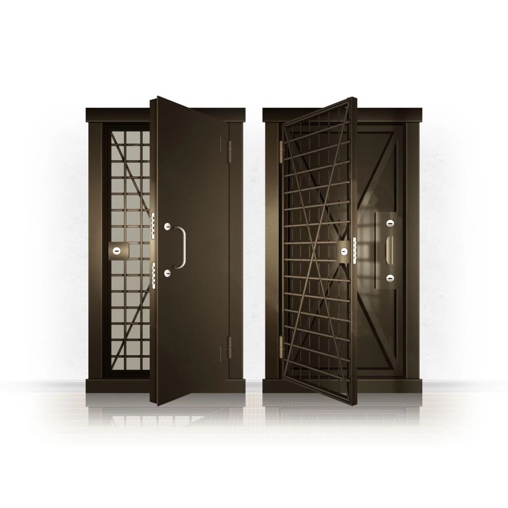 Металлические двери КХО и КХН представляют собой входные блоки, обладающие высоким уровнем взломостойкости и состоят из трех основных элементов: усиленного каркаса, сплошного металлического полотна и решетчатой двери. Дверной блок изготавливается из стального уголка 100*100 мм. Места крепления блока к стене цементируются и закрываются стальными наличниками шириной 40 мм. Крепеж заходит вглубь стены на 80 мм. В конструкции внешней створки монтируются ребра жесткости, для обшивки используется сталь толщиной не менее 3 мм. Внутренняя решетка изготавливается из прутка диаметром 16 мм. Размер ячеек решетки должен составлять не более 15 на 15 см. В точках пересечения прутья надежно приваривают друг к другу. В КХО и КХН необходимо поддерживать определенную температуру и влажность. Для этого внутреннее пространство глухой двери заполняется теплоизоляционным материалом, а по периметру двери приклеивается уплотнитель. Такие двери оборудуются замками с повышенным уровнем взломостойкости. Специализированные двери КХО и КХН в Ессентуках могут быть оснащены сигнализацией, в конструкции могут быть проушины для навесного замка и элементами для опечатывания. Если идет речь о двери в комнату хранения оружия, в створке оборудуется окно для выдачи оружия и спец. средств, которое накрывается стальной дверцей.